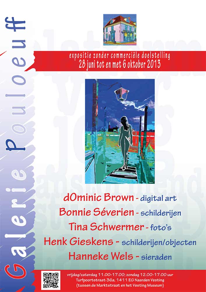 Van 28 juni tot en met 6 oktober exposeerden vijf jonge kunstenaars in Galerie Pouloeuff. Allemaal werken ze in hun eigen stijl maar wat hen bindt is verf. In traditionele en hedendaagse experimentele technieken ‘schilderen’ ze hun voorstellingen. Met de verfkwast, de camera, de muis en als een chemicus gaan de kunstenaars te werk.