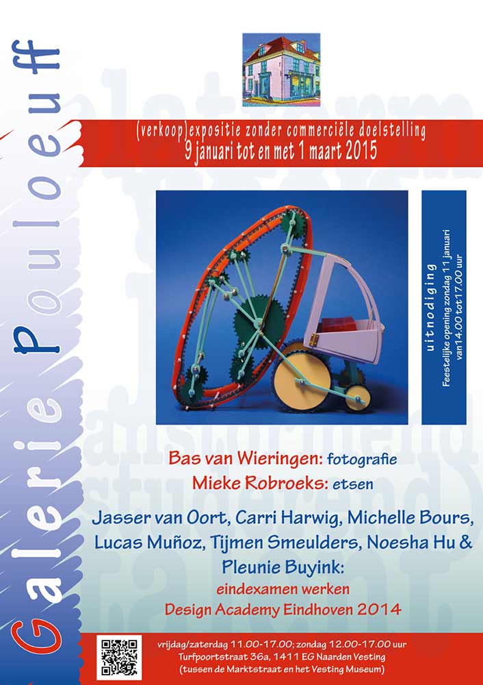 Van 9 januari tot en met 1 maart werden in Galerie Pouloeuff de werken gepresenteerd van de kunstenaars Bas van Wierden en Mieke Robroeks en daarnaast 7 ontwerpers van de Design Academy Eindhoven. Bijzondere onderwerpen komen aan de orde. Hoe wij met onze huisdieren omgaan, wat wij met huisraad doen en wat er gebeurt bij het zitten in bijzondere stoelen.