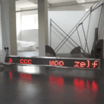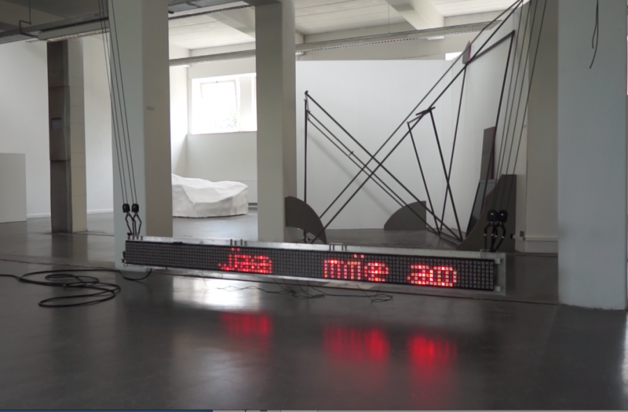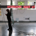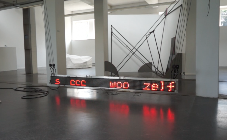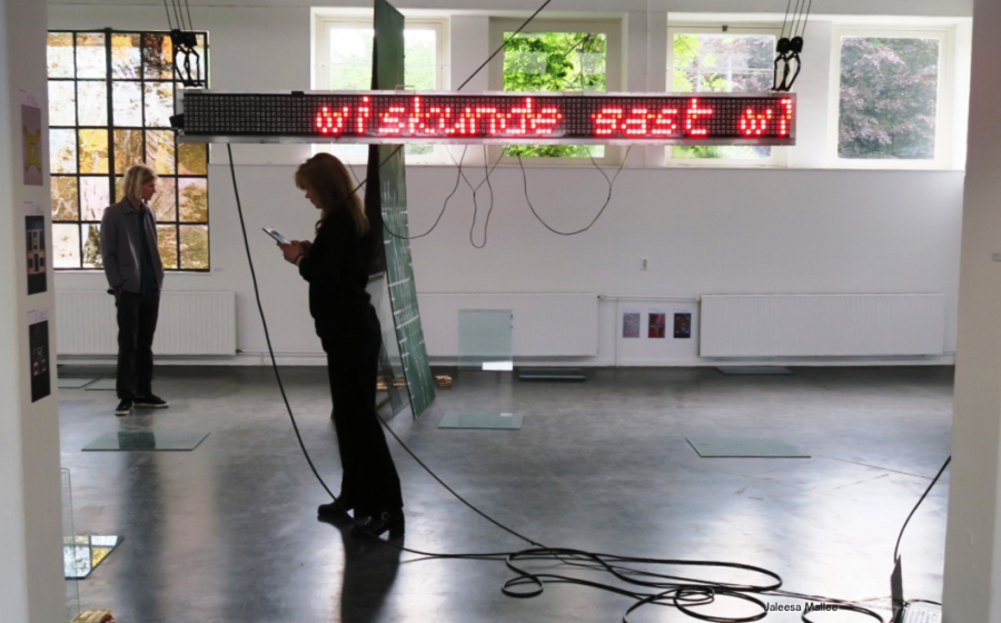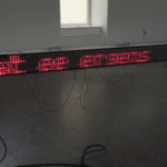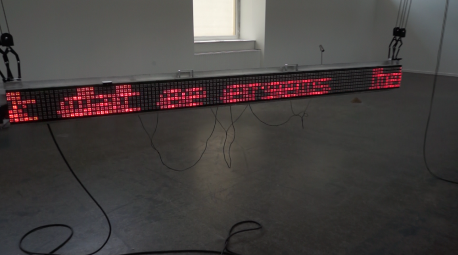 Jaleesa Mallée laat in haar werk “Being read” via de lichtkrant teksten voorbijkomen die zij als buitenstaander opvangt tussen een spreker en een ontvanger.