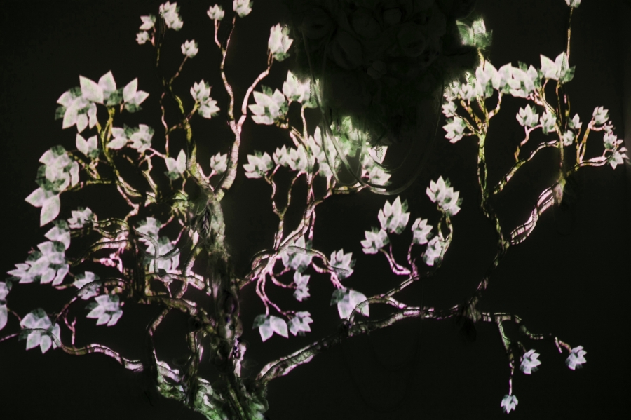 De videomapping-installatie ‘Don’t Hurt Yourself’ van Mara Buur wordt geprojecteerd op textiel en gaat over de verstoorde balans in het klimaat.