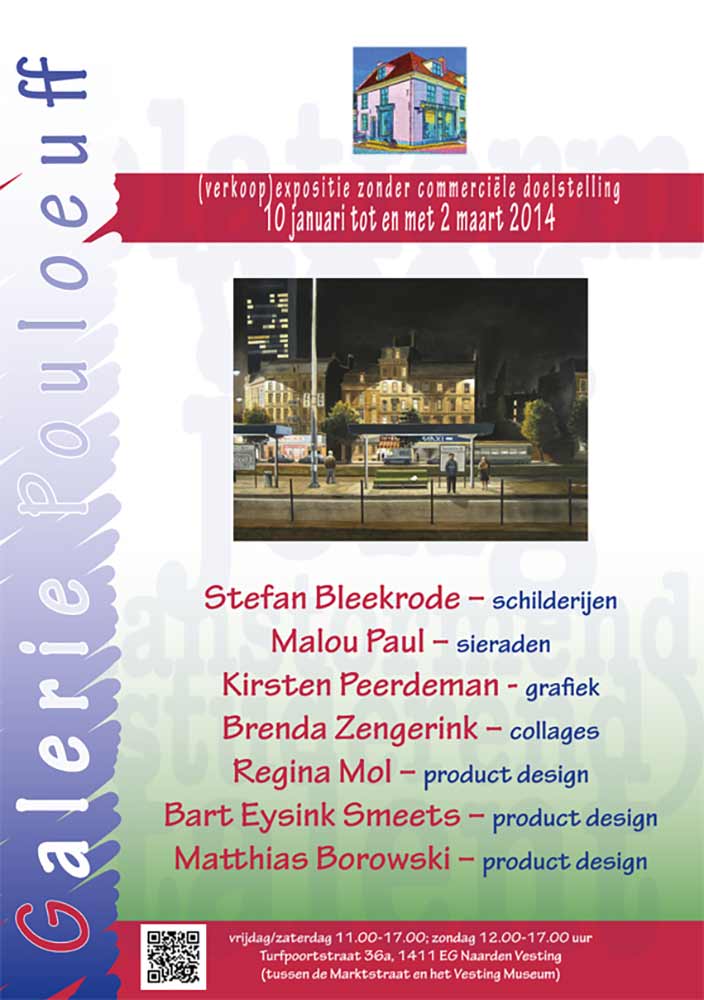 Vanaf 10 januari tot 2 maart 2014 lieten 4 kunstenaars en 3 designers zien hoe materiaal, onderzoek en ‘doen’ (uitproberen) bij elkaar komen. Om te beginnen natuurlijk in Galerie Pouloeuff in Naarden Vesting.