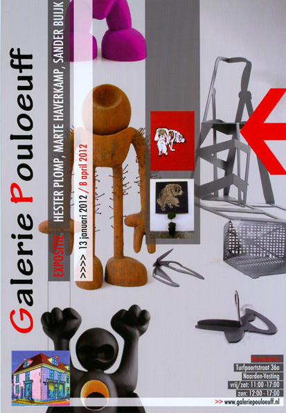 Bij nader inzien hebben zij meer met elkaar gemeen dan het lijkt. Het werk van alle drie nodigt uit tot aanraken. Zien en horen komen in de kunst ruim aan bod, maar ‘voelen’ blijft dikwijls achterwege. Musea staan vol met bordjes ‘verboden aan te raken’. Maar is de plastiek in een schilderij niet net zo belangrijk als de kleur van de olieverf? ‘Voelen’ als ervaring wordt nauwelijks meer bediend in de kunst. Galerie Pouloeuff komt dit zintuig tegemoet met o.a. de beelden van Sander Buijk. Zijn beelden zijn allemaal anders van textuur en daarmee verschillend van karakter. De zachte huid van het beeld ‘Baby’, de ruwe harde huid van ‘Flaco’. Door een zachte aanraking kun je met al deze beelden kennismaken. Maar ook het werk van Hester Plomp biedt op eigen wijze een invulling aan ‘voelen’. Materiaal speelt in haar werk een belangrijke rol. De gutslijnen in het houten schilderij van haar ‘Familiaris’ dagen de bezoeker uit om even de voorstelling te strelen. Daarnaast is er het werk van Marte Haverkamp. Als productontwerper zoekt zij nu juist het niet voelbare op door vorm te geven aan de schaduwen van dagelijkse gebruiksvoorwerpen. Zo vestigt zij de aandacht op vormen die we iedere dag in onze handen hebben.
