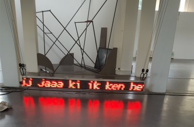 Bij het werk ‘Being read’ heeft zij zich voornamelijk gericht op overdracht-, communicatie- en informatiesystemen. Waarbij het analyseren en toepassen van elementen van de dialogische constructie heeft geleidt tot een verwikkeling met informatietechnologieën. Het werk dat in Galerie Pouloeuff hangt is een residu van een performance die zij tijdens haar eindexamen expositie heeft uitgevoerd. Tijdens deze performance functioneerde zij als performer als een soort antenne. Delen van conversaties die de kunstenaar opving, werden onderwerp van de installatie en door haar live getypt. Om daarna de getypte fragmenten te versturen naar de lichtkrant.