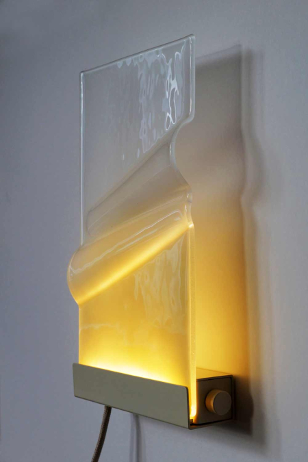 Stel je een glooiend weiland voor, een golvende zee of de subtiele schakeringen van een ondergaande zon. Net als de impressionistische schilders wil Zoutewelle het gevoel van een moment vastleggen. Het licht van een bepaald moment, de bijzondere sfeer van een plek of de subtiele bewegingen van de natuur – dit zijn de elementen die Zoutewelle inspireren. Haar werk draait om landschappen en natuur, maar ze gaat verder dan het simpelweg weergeven ervan. Met haar wandlampen wil ze - door een spel van licht, sfeer en kleur - de ervaring en het gevoel van een moment vangen en overbrengen. Door glaspoeders te laten vervloeien met het gevormde glas ontstaat een interessant spel van licht en schaduw. De verlichting onder de panelen benadrukt de fijne vormen van het glas en laat de poeders oplichten, wat de lampen een subtiele, bijna dromerige uitstraling geeft. Met de dimbare verlichting kunnen de wandlampen eenvoudig worden aangepast aan ieder moment van de dag.