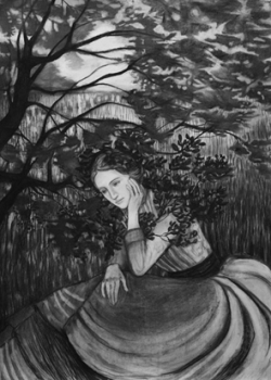 Op papier combineert zij teken- en schildertechnieken om meer dan levensgrote figuren in een landschappelijke omgeving te creëren. Daarbij zijn afbeeldingen uit vervlogen tijden, zoals impressionistische schilderijen en historische foto’s de inspiratiebron. Dergelijke historische afbeeldingen fascineren haar, ze onthullen een historische werkelijkheid en aanwezigheid die tegelijkertijd door het voortschrijden van de tijd verborgen en afgesloten is, net zoals de toekomst. De tijd heeft ze gemaakt tot reservoirs voor de verbeelding en voor gevoelens van nostalgie en verlangen, melancholie en trots, vergankelijkheid en ijdelheid. Haar werk is een onderdompeling in een dergelijke magische schemerzone waarin fictie en non-fictie elkaar ontmoeten, een vreemde droomwereld tussen het reële en het imaginaire.