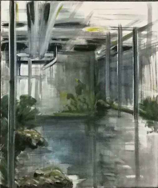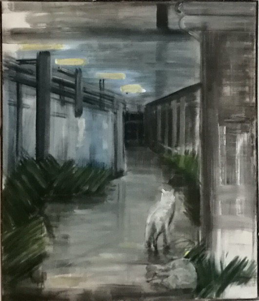 Als kind kwam Jaap Kamsma vaak in de dierentuin en ontwikkelde daar een fascinatie voor dieren in gevangenschap. Het gaat hem niet alleen om de afbeelding van het dier, maar vooral ook om de contouren van zijn leefruimte. Vaak zijn het gesloten ruimtes met veel doorkijken. De bewust gecreëerde verbinding tussen de architecturale structuur en de natuur zijn elementen die hem inspireren. Zo laat hij bijvoorbeeld de lijnen van een kooi het zicht op het dier verstoren in zijn werk. De dieren bevinden zich in gevangenschap in de dierentuin of zijn juist ontsnapt en duiken op in plekken die zijn geïnspireerd op herinneringen van Kamsma. Zijn werk is breed te interpreteren. Sommige mensen ervaren de werken als somber of zwaar, maar anderen zien juist eerder de vrolijkheid en humor. Kamsma werkt met gemengde technieken en heeft voorkeur voor werken op grote schaal.