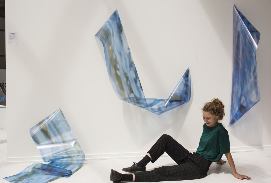 Tijdens deze groepsexpositie zal Jessie Westgeest fotosculpturen tonen. Zij brengt het platte vlak van de fotografie over naar ruimtelijke vormen en materialen. Fotografie wordt beschouwd als het beginpunt waaraan vervolgens meerdere lagen worden toegevoegd. Er ontstaat zo een unieke textuur en context. De drager van de foto wordt vaak vergeten, omdat we kijken naar wat er op de foto staat, maar Westgeest laat met haar werk zien dat afbeeldingen niet zonder materialiteit kunnen bestaan. In dit doorlopende project speelt juist de drager van het beeld een belangrijke rol. De foto’s zijn geprint op verschillende materialen, zoals plexiglas en aluminium, die vervolgens worden omgevormd naar driedimensionale objecten door ze te buigen, snijden en verhitten.