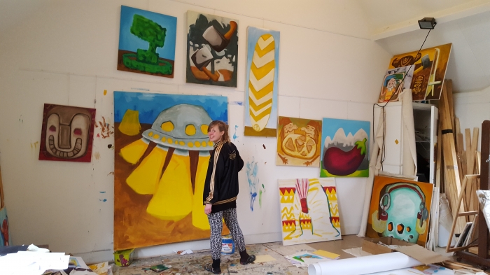 Het werk van Liselot Veenendaal ontstaat vaak uit een razendsnelle impulsieve storm van ideeën, waargebeurde situaties en gedachten die samensmelten met het maken van bijvoorbeeld beelden, woorden en andere fascinaties. Een muur van schilderijen die zij omstoot, deodorantmerk wat axe heet wat dus iets zou kunnen betekenen met bijlen, anekdotes, woordspelingen of gewoon dingen die zij wil schilderen. Door dit voortdurende omgooien, valt de wereld uiteen en vult ze het op een ludieke manier op.
