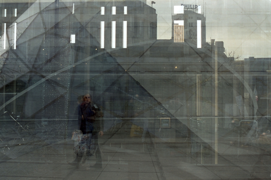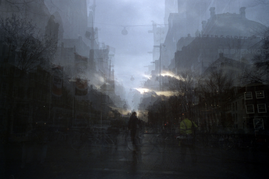Lukas de Kort bevraagt in zijn fotografie werk wat een plek is. Door verscheidene foto’s letterlijk over elkaar heen te leggen – in een soortgelijke compositie – ontstaat er een abstract beeld dat een plek definieert. Door met alle aandacht te kijken zie je vaag de momenten die samen de foto tot een geheel maakt: een nieuw beeld. Hoe dichterbij en hoe langer je kijkt, des te meer ga je zien.