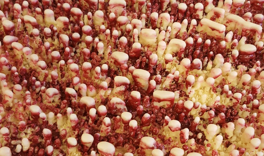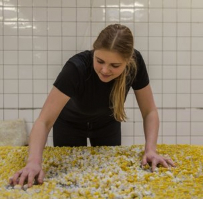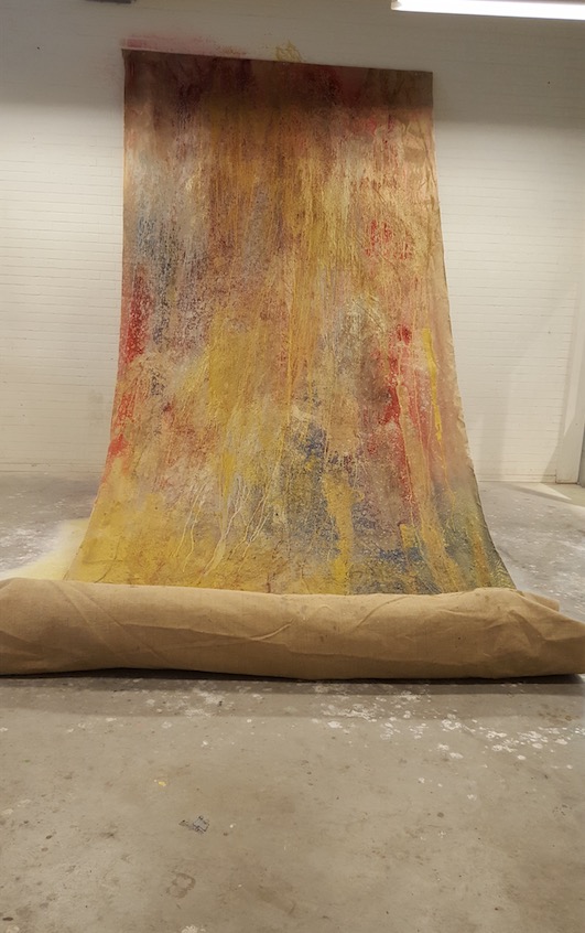Vaida Valanciunaite ziet zichzelf als een schilder, met betrekking tot materialen. En dan in het algemeen voor textiel en was. Een samensmelting van materialen, de wijze hoe zij was en stof bij elkaar brengt. Door te experimenteren met materiaal zoals was met een traditioneel frame – zonder samenkomst van verf – ontstaan er andere mogelijkheden. Door het aanbrengen van was kunnen er dimensies worden gecreëerd. Daardoor wordt een canvas minder vlak. De veranderingen en mogelijkheden van was spreekt haar aan. Of was nu verandert naar vloeibaar, pasta of massief wordt, het blijft was. Het is een materiaal van verschillende vormen. En waarom je beperken tot een traditioneel kader als canvas met een zo flexibel materiaal als was? Door gebruik te maken van andere materialen als ondergrond – materialen in de nabije ruimte – wordt de samenwerking tussen materiaal en ruimte zichtbaar.